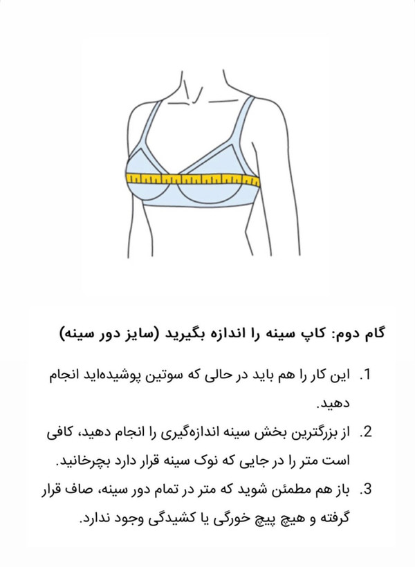 ❌حتما به سایز نوشته شده دقت کنید.اگر اندازه دقیق خودتون رو نمیدونین با سانتی متر زیر سینه (جایی که کش سوتین میمونه) و قسمت روی سینه (روی نوک سینه) اندازه بگیرید.اندازه هاتون رو یا به چت جی پی تی بگید یا توی گوگل سرچ کنین ماشین حساب سوتین اندازه های به دست اومده رو وارد کنید سایز دقیقتون رو میتونین متوجه بشید