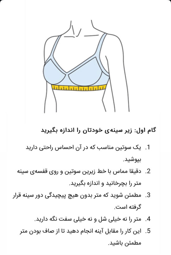 ❌حتما به سایز نوشته شده دقت کنید.اگر اندازه دقیق خودتون رو نمیدونین با سانتی متر زیر سینه (جایی که کش سوتین میمونه) و قسمت روی سینه (روی نوک سینه) اندازه بگیرید.اندازه هاتون رو یا به چت جی پی تی بگید یا توی گوگل سرچ کنین ماشین حساب سوتین اندازه های به دست اومده رو وارد کنید سایز دقیقتون رو میتونین متوجه بشید